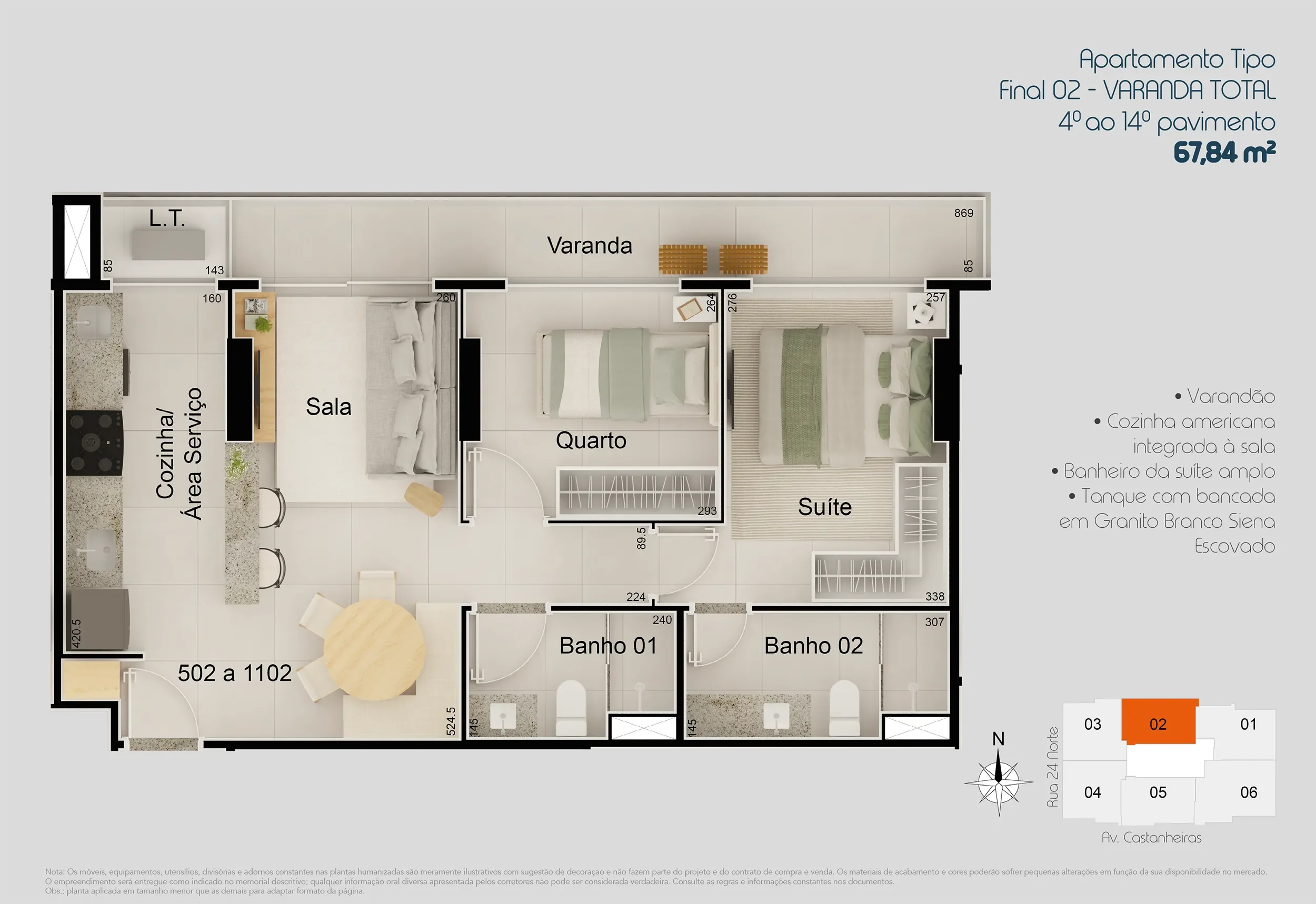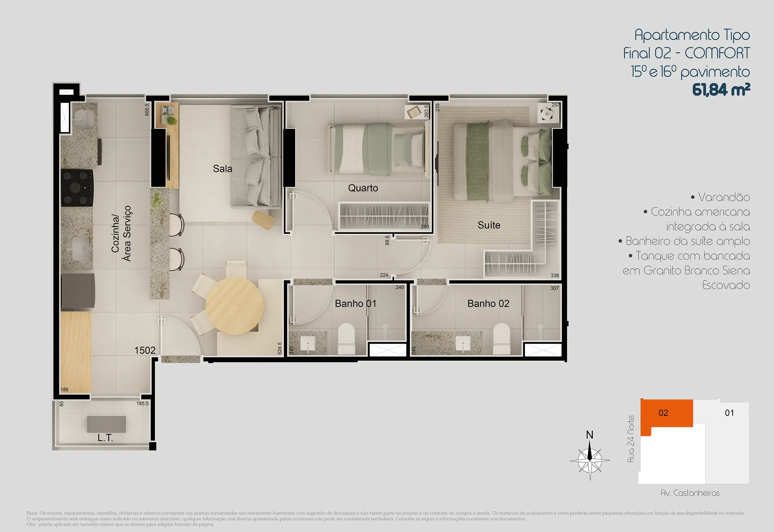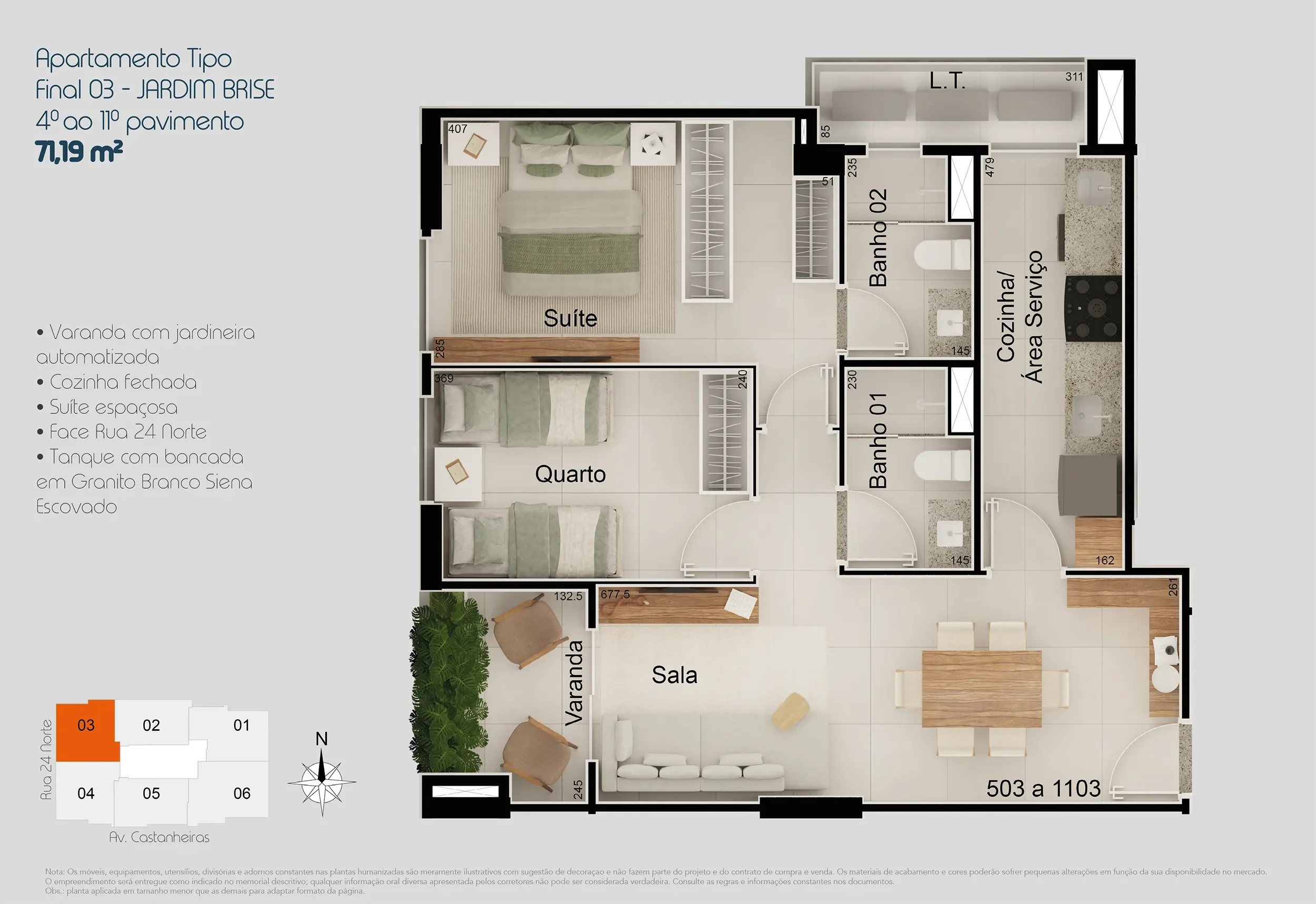 MI R-8 141.039 Registrado no Cartório do 3º Ofício de Registro de Imóveis do Distrito Federal. Todas as perspectivas, imagens e fotos são meramente ilustrativas. Nota: Os móveis, equipamentos, utensílios, divisórias e adornos constantes nas plantas humanizadas são meramente ilustrativos com sugestão de decoraçao e não fazem parte do projeto e do contrato de compra e venda. Os materiais de acabamento e cores poderão sofrer pequenas alterações em função da sua disponibilidade no mercado. O empreendimento será entregue como indicado no memorial descritivo; qualquer informação oral diversa apresentada pelos corretores não pode ser considerada verdadeira. Consulte as regras e informações constantes nos documentos.