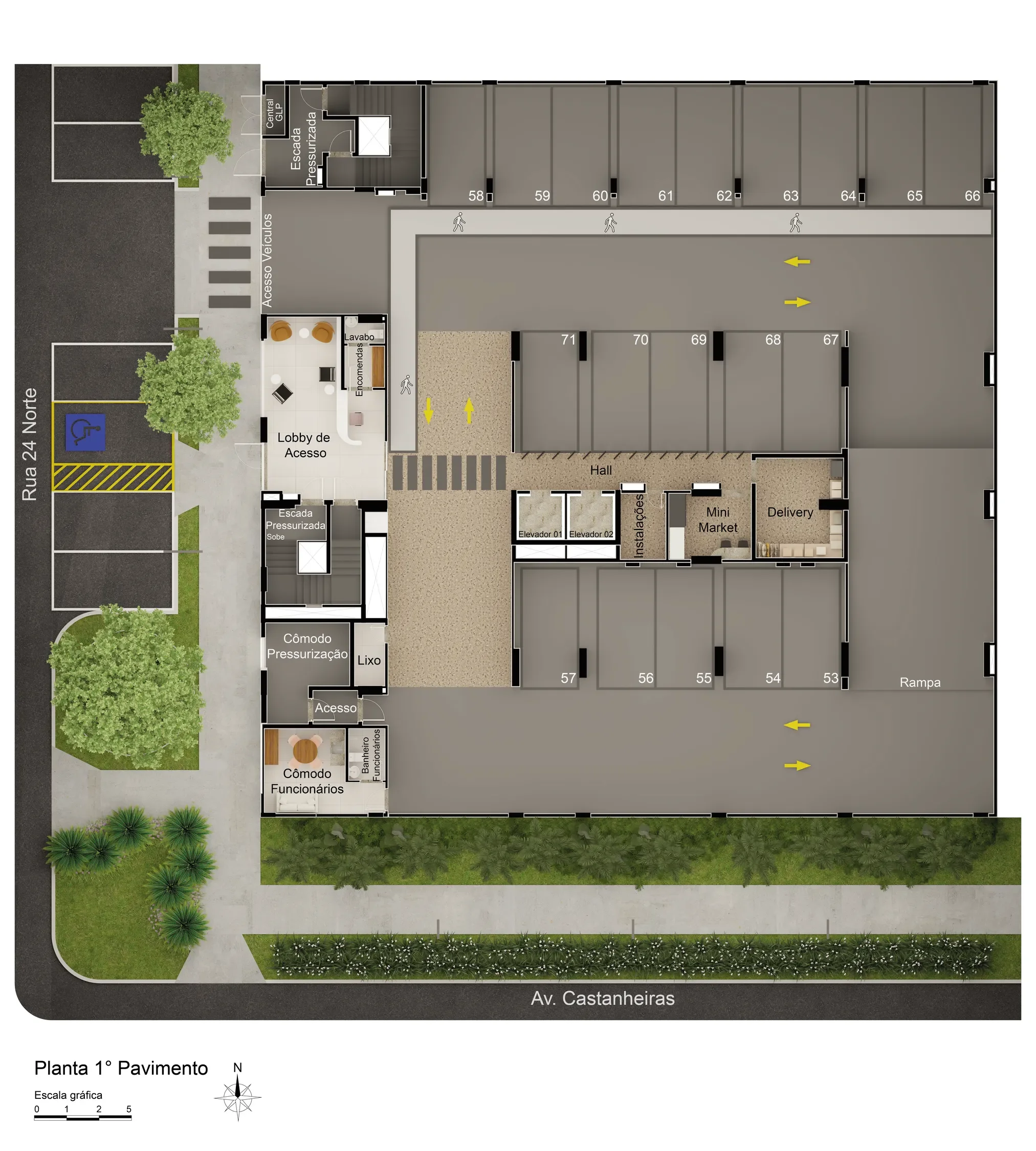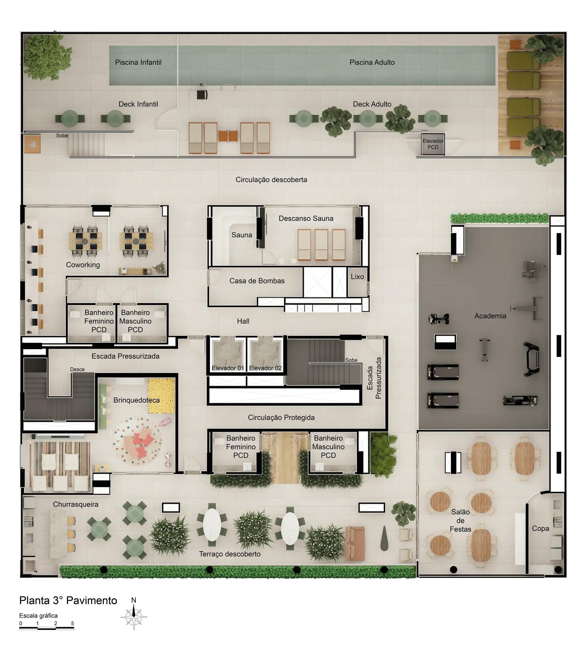 O paisagismo do Identidade Comfort Home nasceu da ideia de transformar a rotina em refúgio. Buscamos inspiração na suavidade do vento, na luz que muda ao longo do dia e na sensação de chegar em casa e realmente desacelerar. As espécies escolhidas valorizam texturas e cores e criam ambientes acolhedores nas áreas de convivência e uma moldura verde elegante para a arquitetura. O resultado é um paisagismo contemporâneo, funcional e afetivo, que convida o morador a viver o lado mais leve da vida todos os dias.